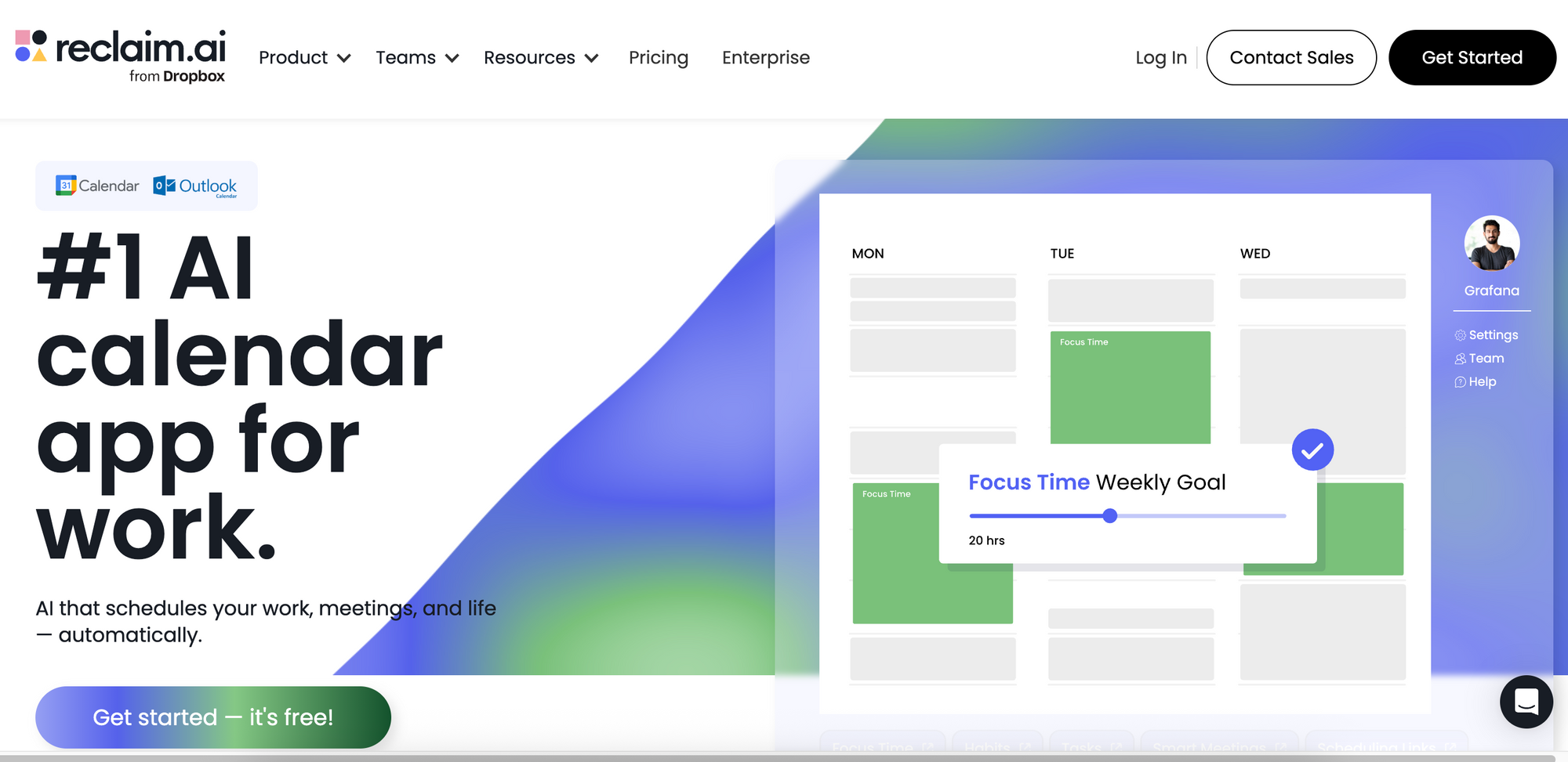 Reclaim is an AI scheduling assistant that automatically blocks focus time, schedules one-on-ones, and reschedules tasks when priorities shift. You can connect it to your task manager or calendar, and it will figure out when you'll actually do the work you've committed to.