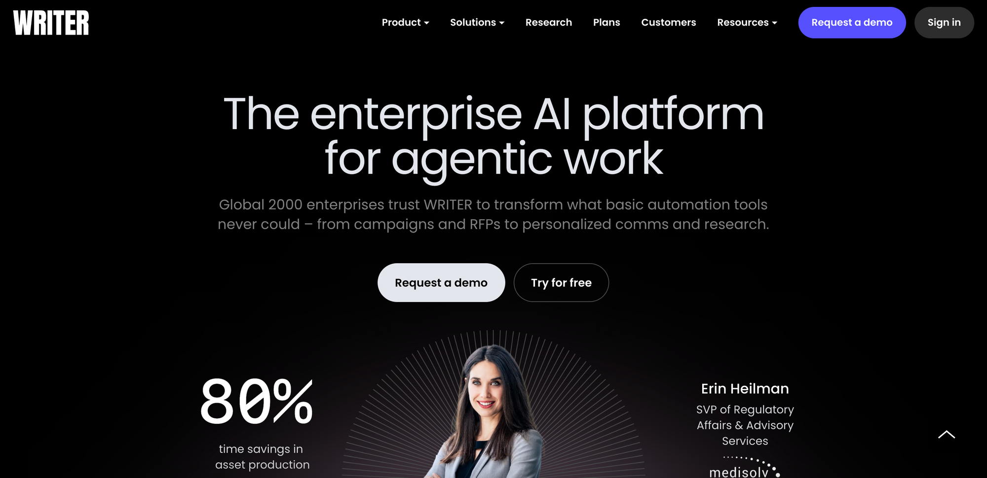 Writer is a full-stack generative AI platform built specifically for enterprises. It runs on Palmyra, Writer's own family of LLMs trained on transparent, auditable data.