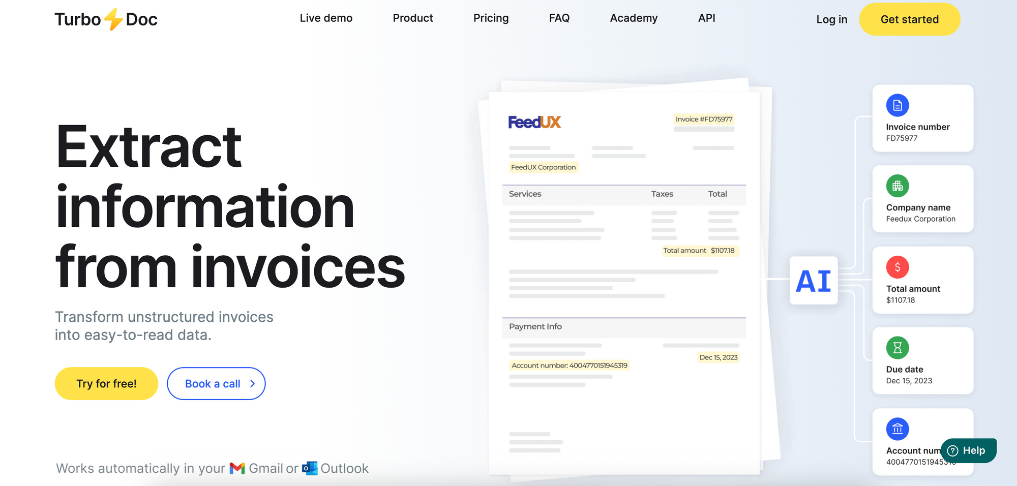 TurboDoc eases financial workflows by automatically extracting and processing data from invoices, receipts, and documents using AI. You can upload PDFs, images, Word/Excel files, integrate with Gmail and Workspace, track everything through a clean dashboard, and eliminate manual errors with enterprise-grade security.