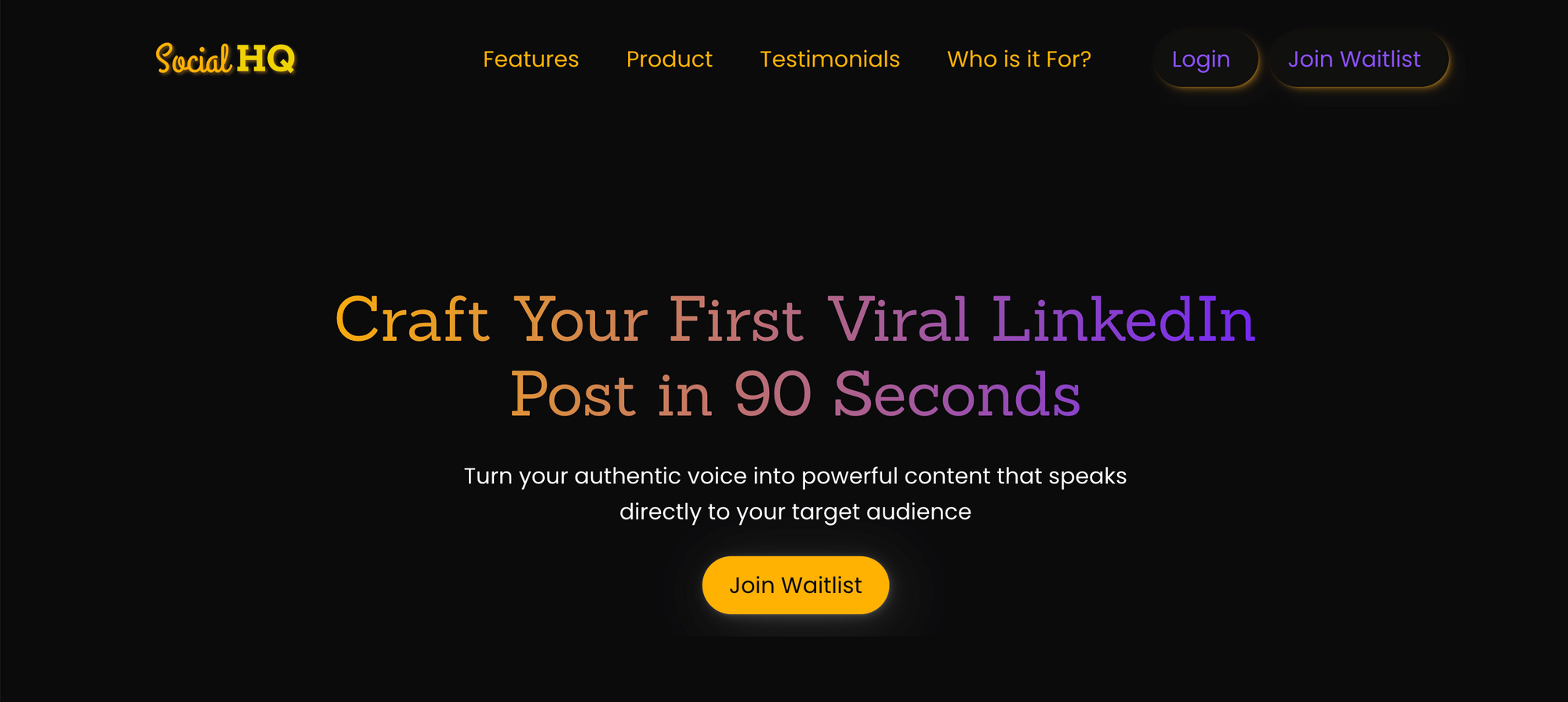 SocialHQ helps professionals grow on LinkedIn without spending hours writing content manually. Its AI agent, Aria, creates posts, articles, video scripts, and even comments in your tone, letting you stay active and relevant while saving time.