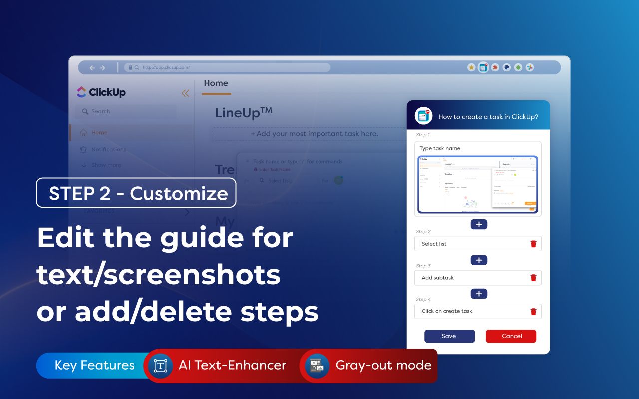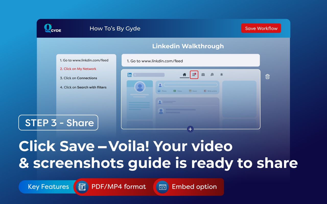When capturing screenshots or recording processes, you have the option to blur sensitive information, ensuring confidentiality. These protected guides can then be easily shared.