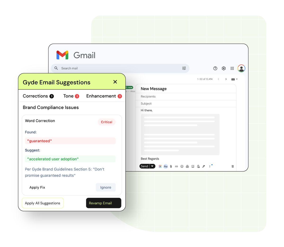 - It also auto-suggests tone-safe corrections before sending the email.