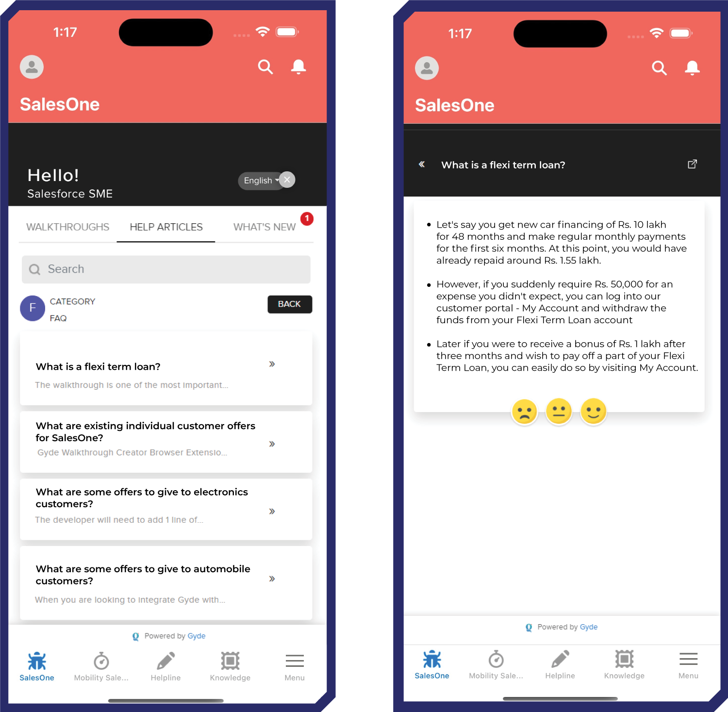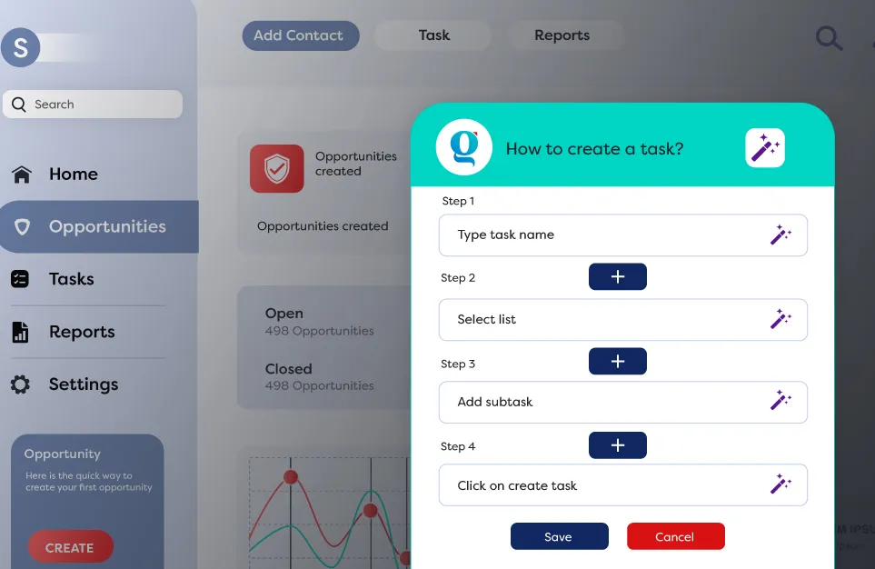 From end-users perspective, Gyde adapts to how end-users want to learn. For example, when a sales rep needs help creating a contact in Salesforce, they can choose how they want guidance: